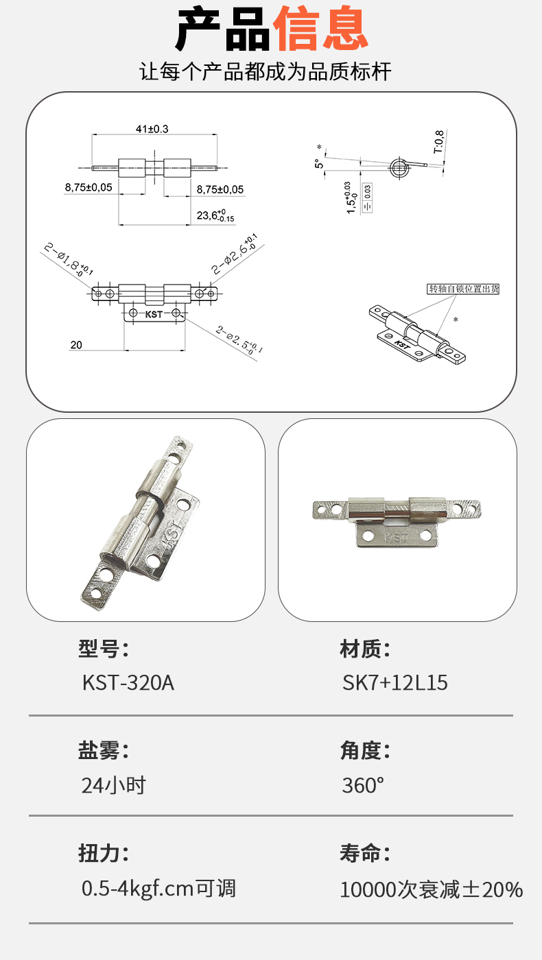 0°自锁阻尼转轴、扭力可调、360度任意停